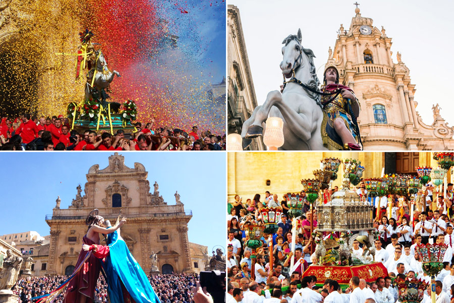 Sicily is known for its strong and unbreakable ties to the Catholic faith. And it is precisely in some of the towns in the Val di Noto that the most exciting celebrations take place, both for the faithful and for visitors. In February and August, thanks to two different moments (19 February and the last Sunday of the summer month), it is possible to attend the celebrations of San Corrado, protector and patron of Noto. A knight from Piacenza, ‘saved from the fire by the hand of God‘, Corrado Confalonieri decided to spend a hermit’s life in Sicily, specifically in a cave in Noto where the sanctuary built in his honour can still be seen. The silver urn with the Saint’s relics is kept in this mystical place. One of the most moving moments is undoubtedly the exposition of the urn, which is then carried in procession through the pews of the cathedral; escorted by devotees and cilii bearers, it will then make its way around the town: from the streets of the high cry of Noto to the churches of the Sacro Cuore and Crocefisso. Another much-awaited religious event is the Festa di San Giorgio in Ragusa Ibla. The figure of this martyr is linked to Diocletian’s persecutions. Renouncing paganism, George – who was a soldier and one of the emperor’s guards – is said to be famous for having torn up the Edict of Nicomedia, a decree against Christians. Arrested, he was then subjected to cruel punishments and terrible punishments. Celebrated on the last Sunday in May and the first Sunday in June, Saint George, depicted on horseback and dressed as a soldier, is carried on the shoulders of the faithful along the alleys of Ibla. The cathedral named after him is decorated for the occasion with banners, flowers and illuminations, as is the entire city. Each year the religious event features famous artists and flag wavers, and offers spectacular pyromusical fires. If you find yourself at Easter in this area then you should not miss the Madonna Vasa Vasa, in Modica. The beauty of this feast lies in the ‘midday kiss’: in the middle of the old town, the Madonna kisses the newly resurrected Christ, but first the two simulacra seek each other out, carried on the shoulders of the faithful. As soon as noon is struck, the Madonna, at the sight of her son, spreads and closes her arms in sign of happiness, and as she removes her black mantle to show her heavenly one, white doves are released. On the Tuesday after Easter, also in Modica, the Madonna dell’Itria, from the far East, is celebrated. This solemn day is characterised by the ‘Sotto90’, a game that consists of drawing 3 numbers from a tombola and managing to score below 90 in order to win a prize! In short, in Val di Noto there will be no lack of fun, good food, tradition and a lot of fun!