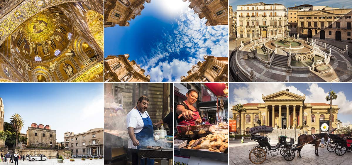 The ever-pleasant warmth of the sun, the sea gently caressing the coast, the unique artistic and cultural heritage that mirrors the various populations that have inhabited and enriched these places. We speak of the fantastic Palermo, capital of the Kingdom of Sicily until 1816 and capital of the island. The opulence of the churches and monuments blends magically with the historic and lively district markets, such as Ballarò and the Vucciria, famous for the vast range of food and wine they offer every day.