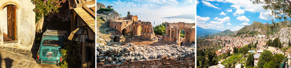 Protected by the imposing Monte Etna, the heart of the small and elegant village with its medieval appearance but Hellenistic soul beats in Piazza del Duomo, where you can have a typical Sicilian breakfast with brioche and granita or enjoy an aperitif in one of the historic bars in the centre. Overlooking the Ionian Sea is the Greek Theatre, the emblem of this town that hosts numerous festivals and cultural events, especially during the summer months. Another jewel is the Villa Comunale, which rises above the sea and is famous for its beautiful gardens. But Taormina is also sea! Isola Bella, a protected reserve since 1998, awaits you with its golden beach and clear waters. The beach of Mazzarò and Giardini Naxos can also be reached in a few minutes!